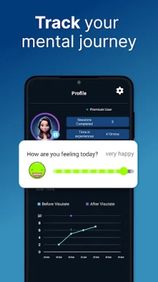 With Visutate, you can have a more peaceful mindset. Improve your quality of life with many Visutate features, such as personal development programs using high-end technology, breath buddy, and creative mode! Escape reality and stress with the help of augmented reality.