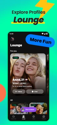 - Browse profiles in the Lounge and follow or message anyone who catches your eye