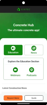 Concrete Hub is a smart mobile app designed to offer a carefully curated collection of the latest construction industry updates, smart cement, concrete standards and guidelines, and educational materials on concrete, blog posts, and videos for Civil Engineering professionals, academics, researchers, and students.
