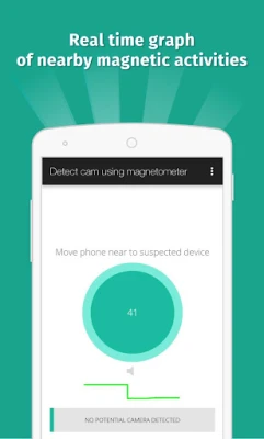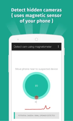 This app analyse the magnetic activity around the device. If magnetic activity seems similar to that of camera, this app will beep and raise alarm for you so that you can further investigate.