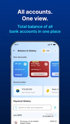 5. Total UPI Bank Balance - View balances across all linked accounts instantly (only for Paytm users).