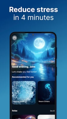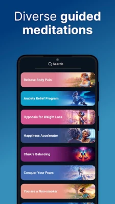 In this anxiety relief hypnosis app, you can experience different immersive rooms like "Magical Ocean", "Sacred Geometry", "Metamorphosis" or "Caretta Paradise". All these immersive rooms have been carefully prepared by experts.